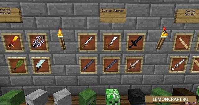 Мод MoSwords добавить в вашу коллекцию большое количество новых мечей. Кроме мечей в игре появится другое холодное оружие, например палаши и чакрамы.